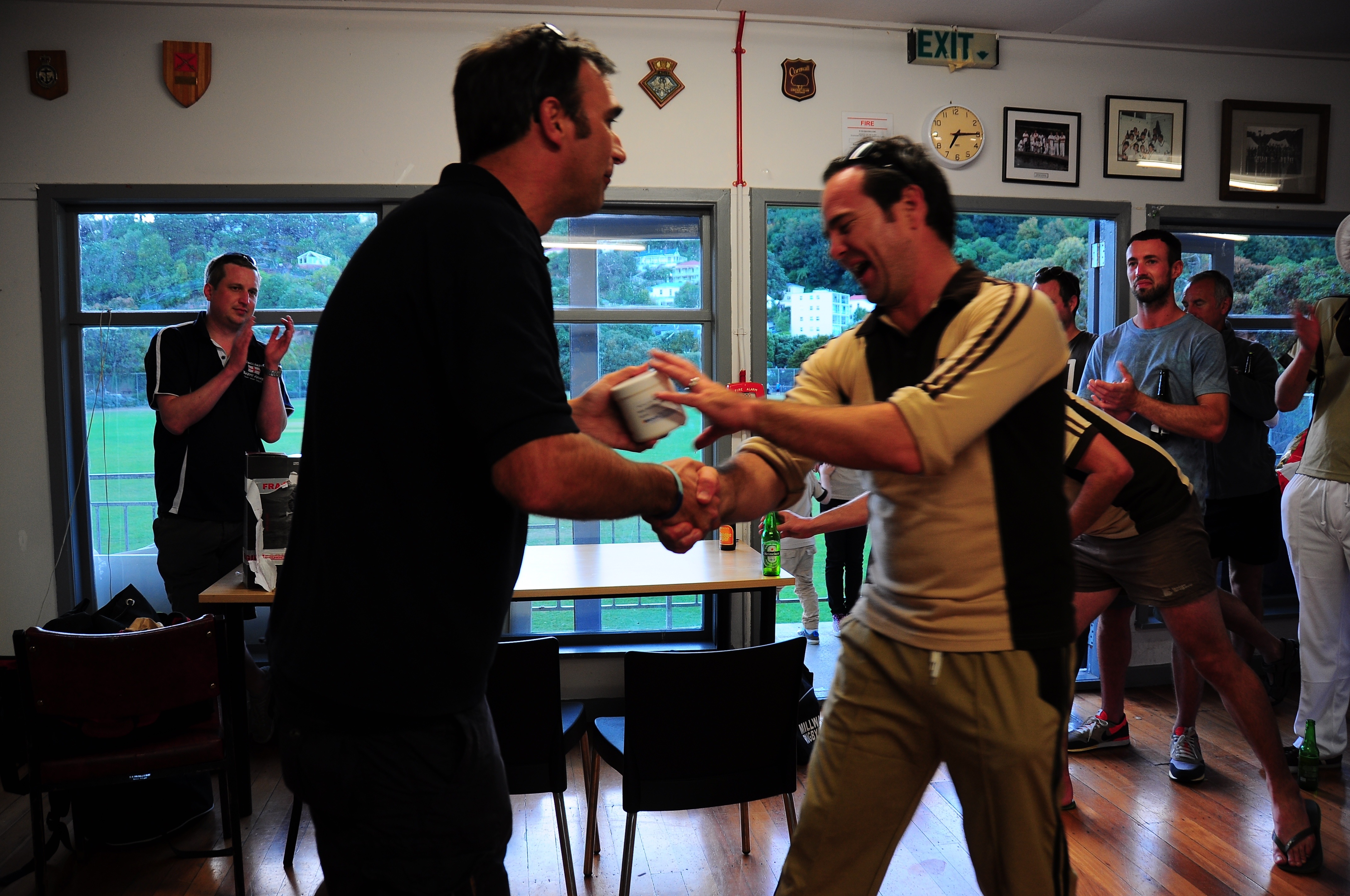 Which they did rather easily to be honest. As with the devastating effort at Dunedin,the Beige batters got amongst the opposition, emptying car parks and sending bystanders scurrying for cover. The Falconhawks trio of Nicko, Duffy and Mann did the damage, captain Coffey also enjoyed himself leading from the front as retiring out turned out to be the main method of dismissal. The Beige XI won by five wickets with an over or two to spare. Barmies captain Giles Wellington presented his opposite number, Paul The Godfather, with The Rashes trophy to great applause in the Wellington Collegians club house.