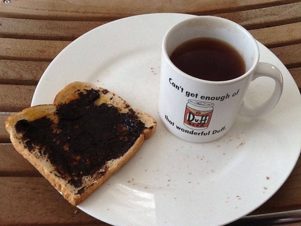 I remember, vaguely, trying Vegemite, once, for something to do and being underwhelmed by it all. For me, the original is the best. I am a big fan of the British version, enjoying a love affair with Marmite from indulgent tea time treat as a kid to morning hangover cure as an even bigger kid. Loosely spread over finger-smarting toast while the butter obediently melts and washed down with a strong cup of Rosie simultaneously while poring over the Telegraph, simply, is one of life’s great pleasures.