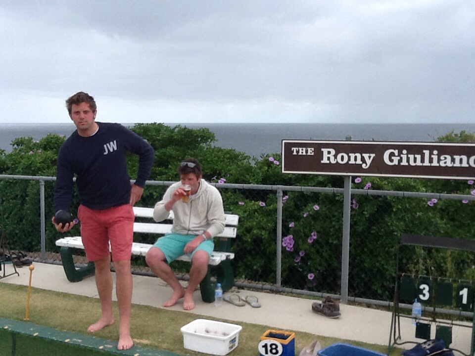 The Rony Giuliano Ground, on a wet Wednesday in New South Wales. As may have been reported before, it hadn’t been an overly successful tour sport-wise up to this point. However, the chance for victory, any kind of victory, even this late in the holiday still beckoned. Not on the cricket fields, or the beaches, but on the bowling greens of Clovelly.